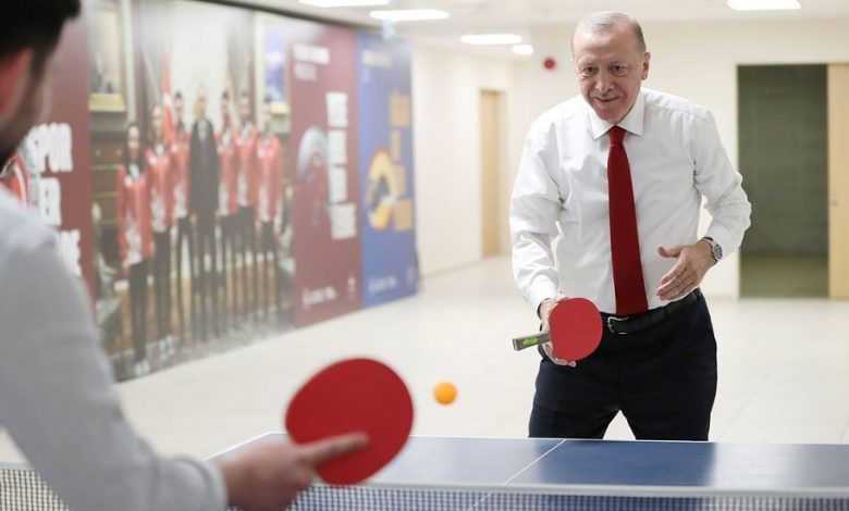 نشرت وسائل إعلام تركية مقطع فيديو ظهر فيه رئيس البلاد رجب طيب أردوغان وهو يلعب كرة الطاولة مع طلاب الجامعات في اسطنبول.