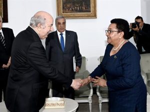 استقبل رئيس الجمهورية, السيد عبد المجيد تبون, اليوم الثلاثاء بالجزائر العاصمة, وزيرة الخارجية والتعاون الشرق إفريقي لجمهورية تنزانيا المتحدة, السيدة ستر جومينا لورانس تاكس.